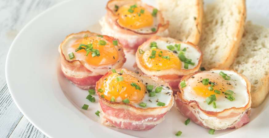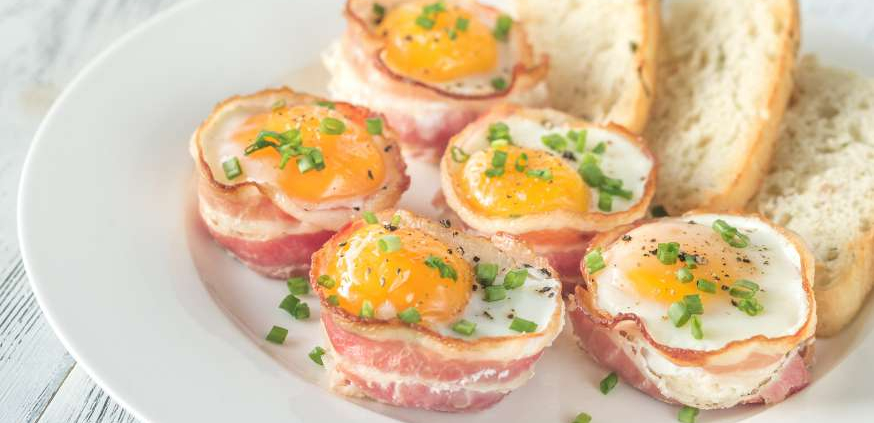 „Чашки“ с бекон и яйца